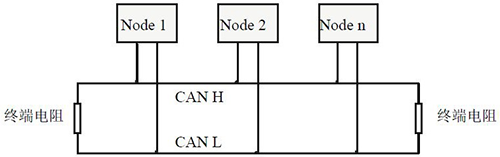 為了增強(qiáng)CAN通訊的可靠性,消除CAN總線終端信號反射干擾,CAN總線網(wǎng)絡(luò)最遠(yuǎn)的兩個端點通常要加入終端匹配電阻,如圖所示。終端匹配電阻的值由傳輸電纜的特性阻抗所決定。例如雙絞線的特性阻抗為120Ω,則總線上的兩個端點也應(yīng)集成120Ω終端電阻。