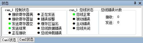 CAN總線狀態(tài)顯示:指示當(dāng)前CAN總線狀態(tài)包括:總線正常、被動錯誤、主動錯誤、總線掛起。