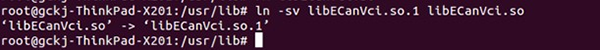 5、進(jìn)入gcc編譯庫文件夾,把libECanVci.so.1和libECanVci.so鏈接到一起。輸入:ln-sv libECanVci.so.1 libECanVci.so