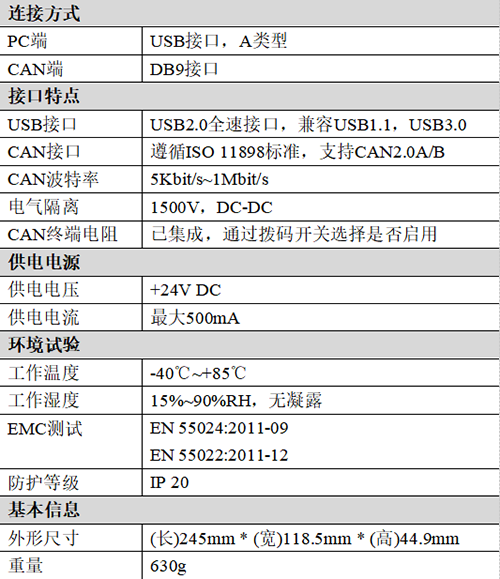(6)CAN-Bus接口采用電氣隔離,隔離模塊絕緣電壓:DC 1500V;