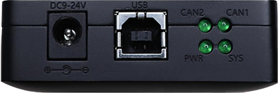 USBCAN-I Pro+接口卡上電后,四個(gè)指示燈同時(shí)點(diǎn)亮,之后PWR和SYS常亮,表明設(shè)備已經(jīng)供電,系統(tǒng)完成初始化;否則,表示存在系統(tǒng)電源故障或其他故障,需聯(lián)系我公司客服人員。USB接口連接正常后,當(dāng)PC端有上位機(jī)軟件調(diào)用USBCAN設(shè)備時(shí),USB信號(hào)指示燈SYS會(huì)閃爍。當(dāng)CAN總線上有數(shù)據(jù)收發(fā)時(shí),對(duì)應(yīng)的RX、TX指示燈會(huì)有閃爍。