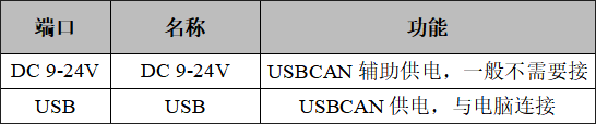 USBCAN-I Pro+接口卡具有即插即用的特點(diǎn),因此用戶可以使用PC機(jī)的USB接口直接向USBCAN-I Pro+接口卡供電;若USB供電不足,則需選用外部電源供電方式。
