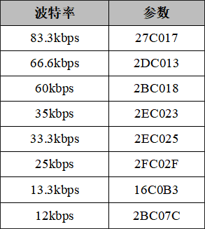 如您使用的是特殊波特率,請(qǐng)點(diǎn)擊自定義按鈕,此時(shí)需要您輸入一個(gè)十六進(jìn)制碼,下表中列出了部分特殊波特率的值,如您需要其他波特率請(qǐng)聯(lián)系我們,我們會(huì)幫您計(jì)算寄存器設(shè)置值。