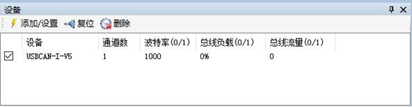 ②“打開設(shè)備”按鈕:點(diǎn)擊該按鈕,可調(diào)取USBCAN設(shè)備。若顯示“USB設(shè)備打開錯(cuò)誤!”請(qǐng)檢查①中選擇的設(shè)備是否正確,設(shè)備管理器中的驅(qū)動(dòng)是否安裝正確。