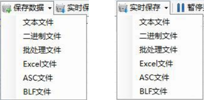 用戶可將當(dāng)前發(fā)送/接收列表中的全部數(shù)據(jù)保存到本地,保存格式詳見下表: