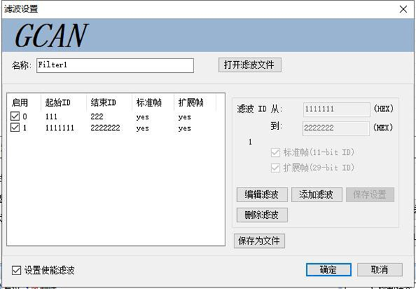 點(diǎn)擊“添加濾波”即可開始編輯,輸入想要過濾顯示的ID或ID段后點(diǎn)擊“保存設(shè)置”即可將濾波內(nèi)容添加到的左側(cè)。
