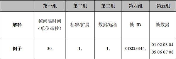 第三位(3):打開第幾路CAN,打開CAN1輸入1,打開CAN2輸入2同時(shí)打開CAN1和CAN2輸入3;
