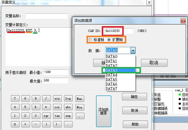通道選擇:在左上角“通道”下拉框中選中用于DBC消息發(fā)送的設(shè)備通道;