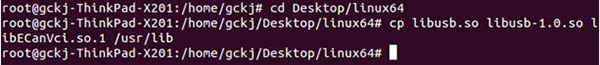 4.進(jìn)入U(xiǎn)SBCAN驅(qū)動(dòng)文件夾,拷貝libusb.so、libusb-1.0.so、libECanVci.so.1到gcc編譯庫目錄下。(默認(rèn)路徑為/usr/lib)輸入:cp libusb.so libusb-1.0.so libECanVci.so.1/usr/lib(默認(rèn)路徑為/usr/lib)