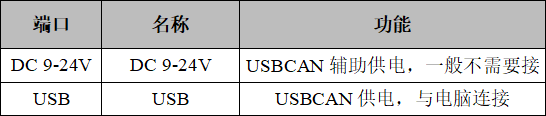 USBCAN-II C+接口卡具有即插即用的特點,因此用戶可以使用PC機的USB接口直接向USBCAN-II C+接口卡供電;若USB供電不足,則需選用外部電源供電方式。