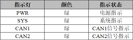 USBCAN-II C+接口卡具有1個PWR指示燈、1個SYS指示燈、1個CAN1指示燈、1個CAN2指示燈來指示設備的運行狀態(tài)。這4個指示燈的具體指示功能見下表,這4個指示燈處于各種狀態(tài)下時,CAN總線的狀態(tài)如表所示。