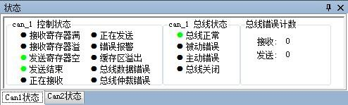 CAN總線狀態(tài)顯示:指示當前CAN總線狀態(tài)包括:總線正常、被動錯誤、主動錯誤、總線關閉。