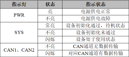 USBCAN-II C+接口卡指示燈狀態(tài)