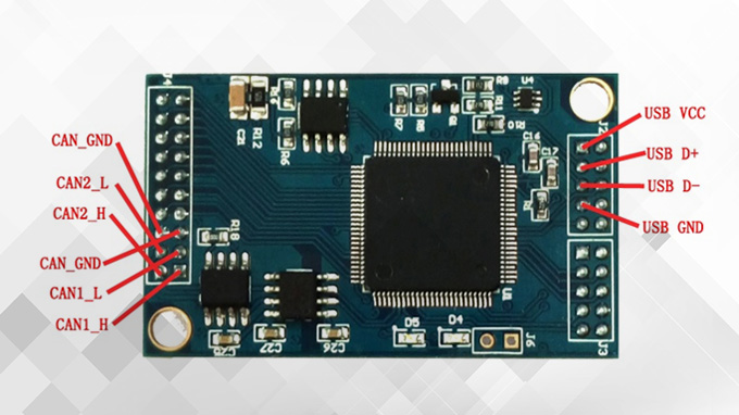 2.USB轉(zhuǎn)CAN接口卡。USB端通過(guò)上位機(jī)軟件,將想要發(fā)送的數(shù)據(jù)編輯后通過(guò)CANCore輸出到CAN總線。
