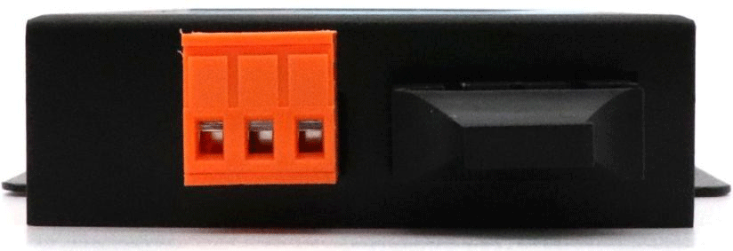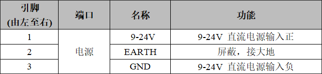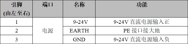 GCAN-208-1模塊的電源接口由一個3 PIN插拔式接線端子引出(橙色),電源及光纖接口位置、接口定義如下面圖表所示。