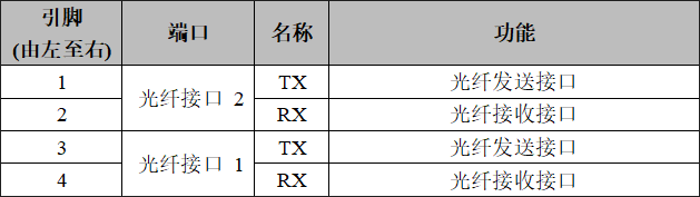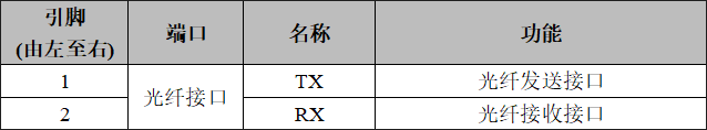 GCAN-208-2模塊光纖接口位置、接口定義如下面圖表所示。
