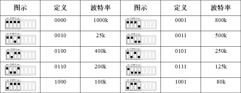 (1)通過撥碼開關(guān)配置CAN總線波特率