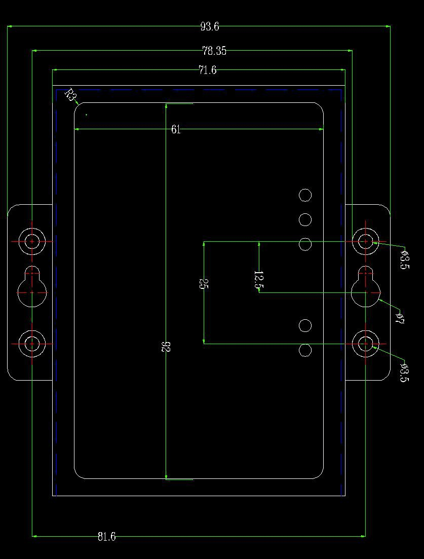 設(shè)備外形尺寸:(長,含接線端子)118mm*(寬)93mm*(高)22mm,其示意圖如圖所示。