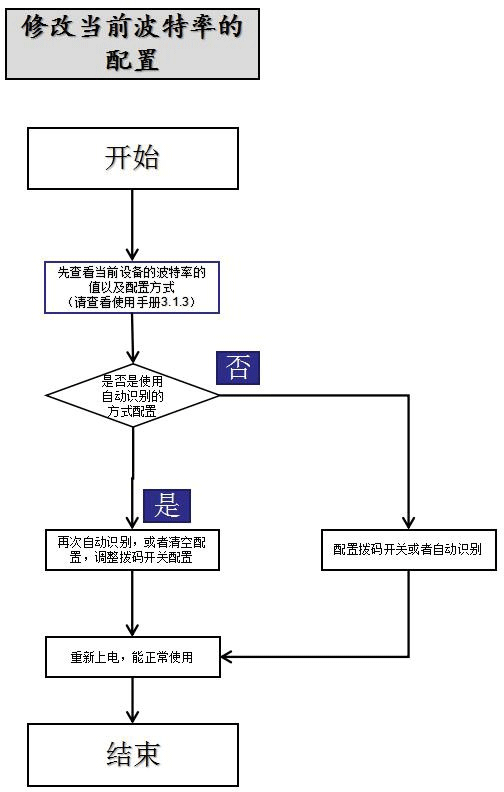 當需要修改當前設(shè)備的波特率時,按照如下流程圖所示操作即可。