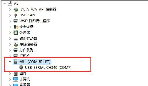 用戶自行與配置軟件連接需要使用USB線接到圖3.6中的USB接口上,進(jìn)入設(shè)備管理器找到串口號(hào)。如圖所示。