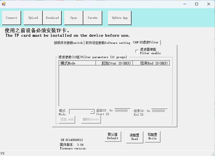 CANREC-config軟件主界面