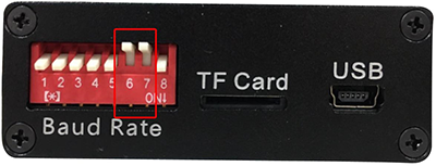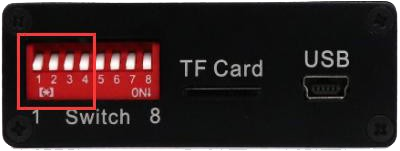 CAN總線數(shù)據(jù)存儲(chǔ)器模塊可以支持10K~500K之間一組常用的波特率,可以通過(guò)操作設(shè)備側(cè)面的撥碼開(kāi)關(guān),對(duì)波特率進(jìn)行配置,撥碼開(kāi)關(guān)位置如圖所示。