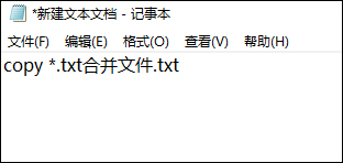 以合并文本文件(.txt)為例,在想要合并文件的文件夾中新建一個(gè)文本文檔,文檔中輸入以下內(nèi)容: