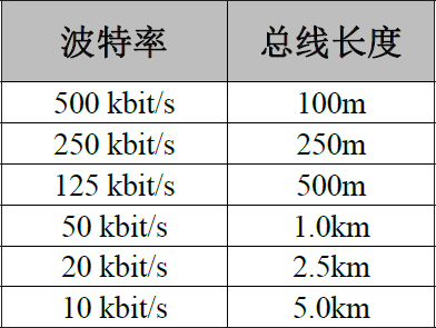 波特率與最大總線長(zhǎng)度參照表