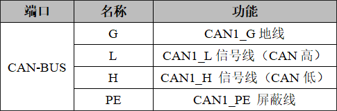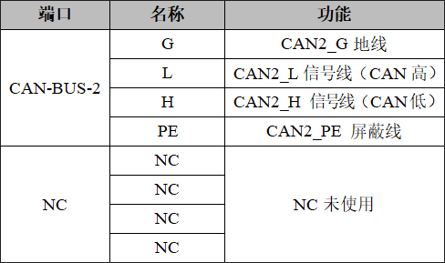 GCAN-GT-415模塊CAN1-bus接口由1個(gè)4 Pin接線端子引出,有2個(gè)獨(dú)立的CAN接口,其接口定義如表所示。