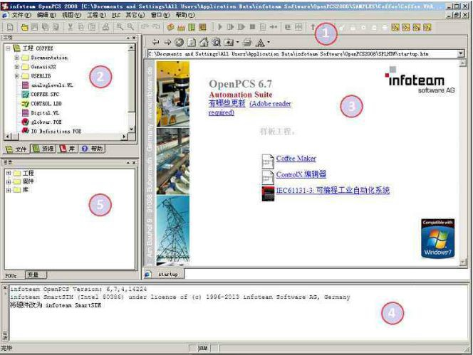 1.菜單工具欄2.工程瀏覽器3.編輯窗口4.輸出窗口5.目錄窗口