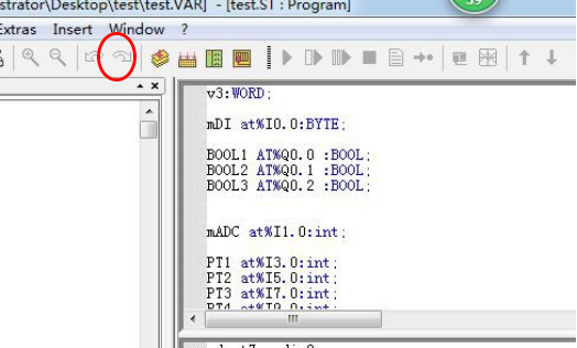 完成變量定義后便可在下方的編程界面開始編程了,下面為用ST編寫的簡(jiǎn)單例程語句: