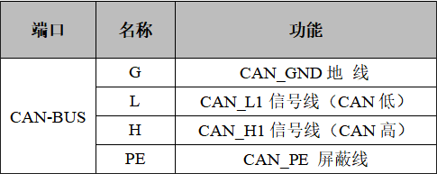 GCAN-GT-419模塊CAN-bus接口由1個4 Pin接線端子引出,有2個獨(dú)立的CAN接口,其接口定義如表所示。