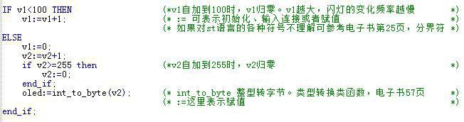 完成變量定義后便可在下方的編程界面開始編程了,下面為用ST編寫的簡單例程語句: