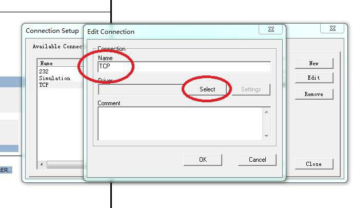 3、在Name中輸入TCP,點(diǎn)擊Select按鈕。