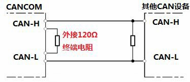 請注意:GCAN-207模塊內(nèi)部未集成120Ω終端電阻。如果節(jié)點數(shù)目大于2,中間節(jié)點不需要安裝120Ω的終端電阻。需要使用時,將電阻兩端分別接入CAN_H、CAN_L即可,如圖所示。