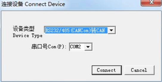 進(jìn)入軟件后,選擇連接到GCAN-207的串口號,點擊“連接設(shè)備”即可建立連接。如用戶不知道串口號,可通過進(jìn)入PC機(jī)的設(shè)備管理器中查看。點擊“Connect”后,界面彈出“讀取參數(shù)成功”,表明已讀出模塊當(dāng)前的配置情況。