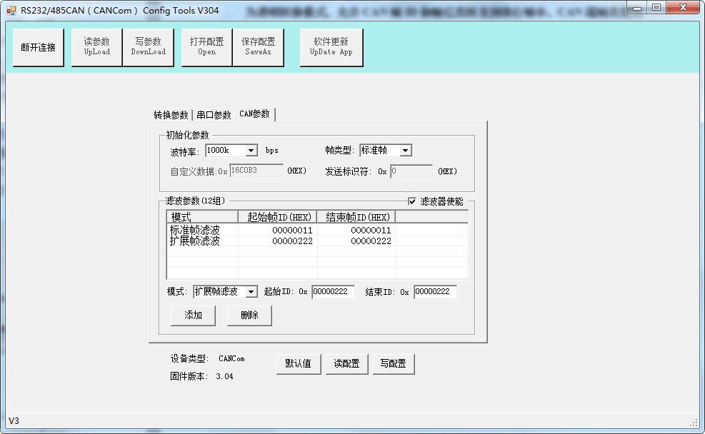 CANCOM-Config-V304軟件主界面