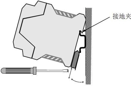 GCAN-226模塊與安裝模塊的導(dǎo)軌相連。如果導(dǎo)軌固定到一個(gè)接地的金屬組件板上,那么模塊會(huì)自動(dòng)接地,不需要從外部接地線。如果導(dǎo)軌固定到一個(gè)未接地的底座上,那么必須將導(dǎo)軌連接到最近的接地端子上。