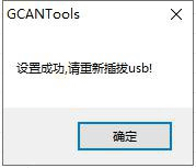 設(shè)置完成后,點(diǎn)擊寫(xiě)設(shè)置,會(huì)出現(xiàn)如圖所示的“設(shè)置成功,請(qǐng)重新插拔usb!”結(jié)果。之后設(shè)備需要重新上電,配置才會(huì)生效。