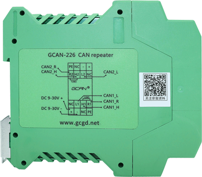 GCAN-226模塊集成兩路CAN總線,無(wú)需連接PC即可起到不同CAN網(wǎng)絡(luò)的中繼,使波特率不同的CAN網(wǎng)絡(luò)互相通信。