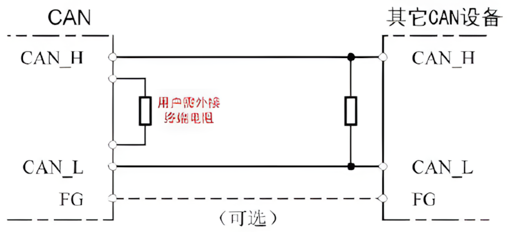 為了增強(qiáng)CAN通訊的可靠性,消除CAN總線終端信號(hào)反射干擾,CAN總線網(wǎng)絡(luò)最遠(yuǎn)的兩個(gè)端點(diǎn)通常要加入終端匹配電阻,如圖所示。終端匹配電阻的值由傳輸電纜的特性阻抗所決定。例如雙絞線的特性阻抗為120Ω,則總線上的兩個(gè)端點(diǎn)也應(yīng)集成120Ω終端電阻。