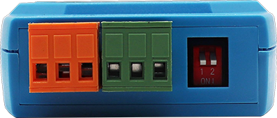 GCAN-208-S系列模塊CAN通道內(nèi)部已經(jīng)集成標(biāo)準(zhǔn)120Ω終端電阻,可通過(guò)撥碼開關(guān)選擇是否將電阻接入總線,R1、R2兩個(gè)開關(guān)控制同一個(gè)電阻,請(qǐng)一起對(duì)R1、R2進(jìn)行操作,撥到ON的位置即可將電阻啟用。