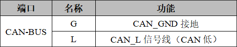 GCAN-GT-410模塊CAN-bus接口由1個(gè)4 Pin接線端子引出,可以用于連接1個(gè)CAN-bus網(wǎng)絡(luò)或者CAN-bus接口的設(shè)備,其接口定義如表所示。