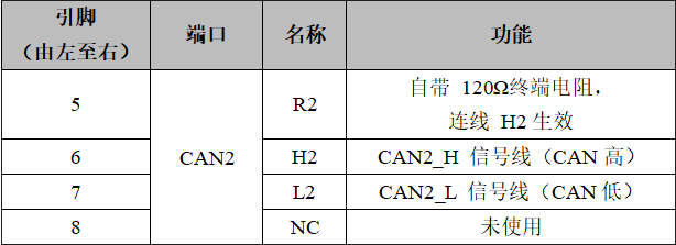 GCAN-212-B模塊的上方為CAN2接口。CAN2總線接口由一個(gè)4 PIN插拔式接線端子引出(綠色)。CAN2總線接口位置、接口定義如圖所示。