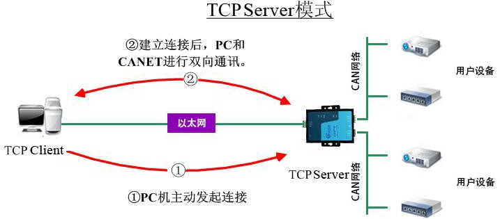 廣成科技GCAN-212-B接口卡的以太網(wǎng)接口符合以太網(wǎng)標(biāo)準(zhǔn)協(xié)議規(guī)范,設(shè)備集成10/100M自適應(yīng)以太網(wǎng)芯片,支持即插即用。用戶(hù)可以使用標(biāo)準(zhǔn)以太網(wǎng)網(wǎng)線將工業(yè)以太網(wǎng)與GCAN-212-B連接。GCAN-212-B支持3種工作模式——TCPServer模式、TCP Client模式、UDP模式。這3種工作模式的介紹詳情如下: