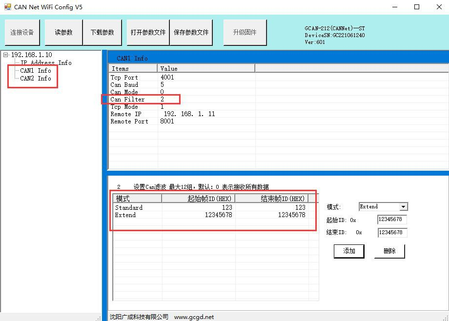 廣成科技GCAN-212-B配置軟件設(shè)置濾波