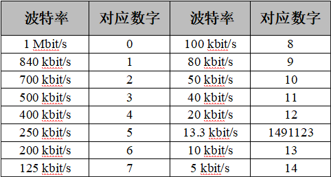 波特率與對(duì)應(yīng)數(shù)字對(duì)照表