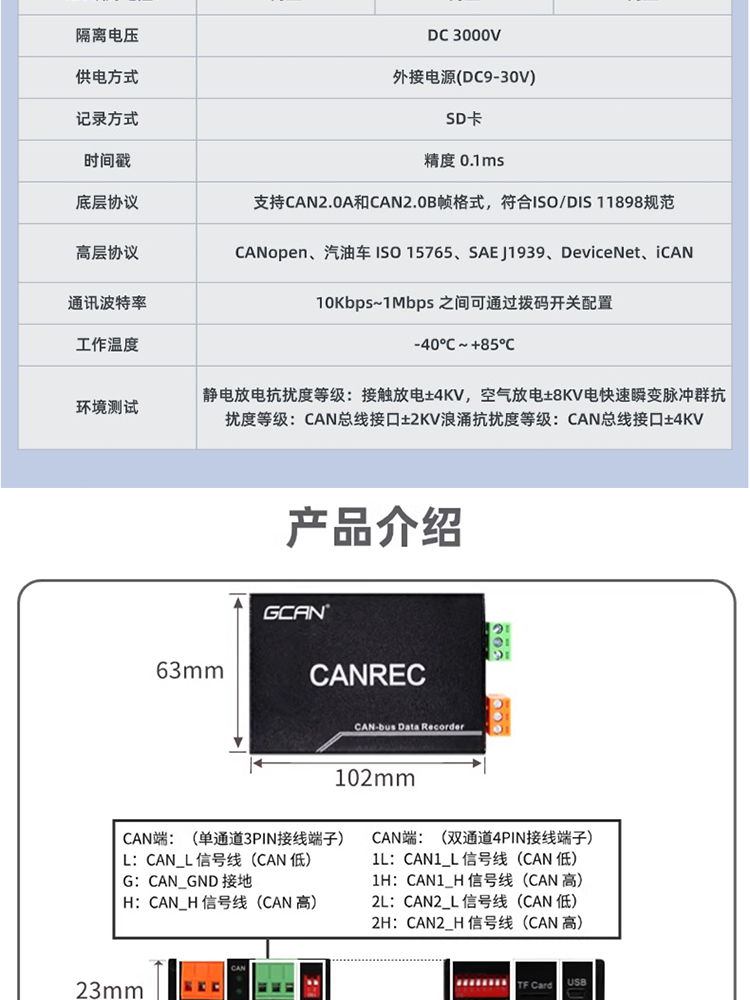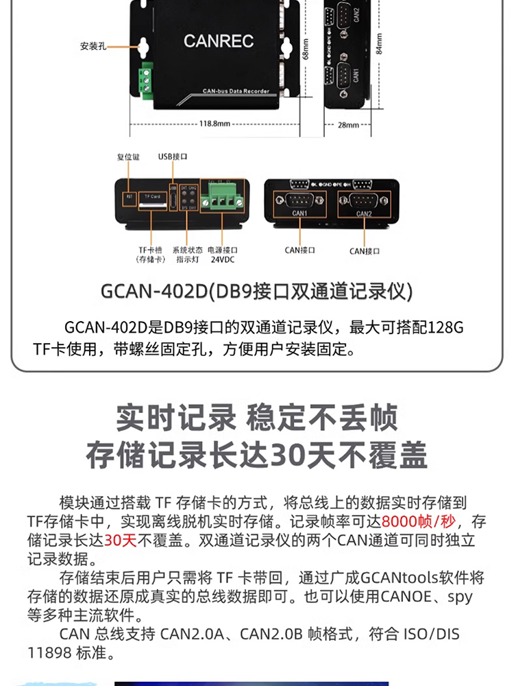 - ● 高鐵控制柜通信實(shí)時(shí)記錄 ● 地鐵電器柜通信實(shí)時(shí)記錄 ● 汽車(chē)數(shù)據(jù)記錄回放 ● 無(wú)人監(jiān)控CAN總線(xiàn)數(shù)據(jù)記錄 ● 故障記錄分析