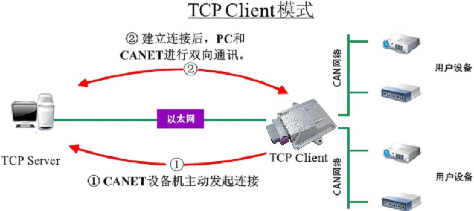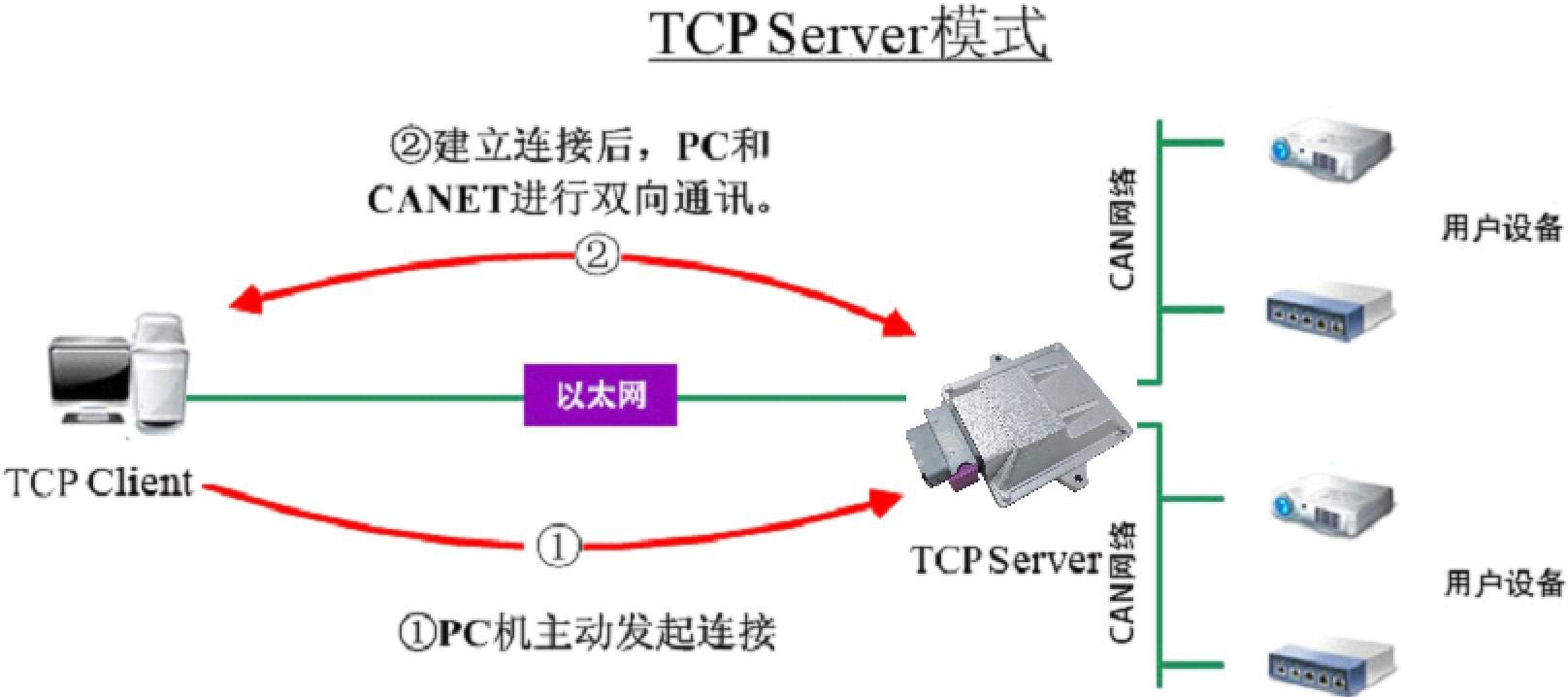 廣成科技GCAN-212-W接口卡的以太網(wǎng)接口符合以太網(wǎng)標(biāo)準(zhǔn)協(xié)議規(guī)范,設(shè)備集成10/100M自適應(yīng)以太網(wǎng)芯片,支持即插即用。用戶可以使用標(biāo)準(zhǔn)以太網(wǎng)網(wǎng)線將工業(yè)以太網(wǎng)與GCAN-212-W連接。GCAN-212-W支持3種工作模式——TCP Server模式、TCP Client模式、UDP模式。這3種工作模式的介紹詳情如下: