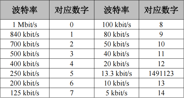 表3.1波特率與最大總線長(zhǎng)度參照表